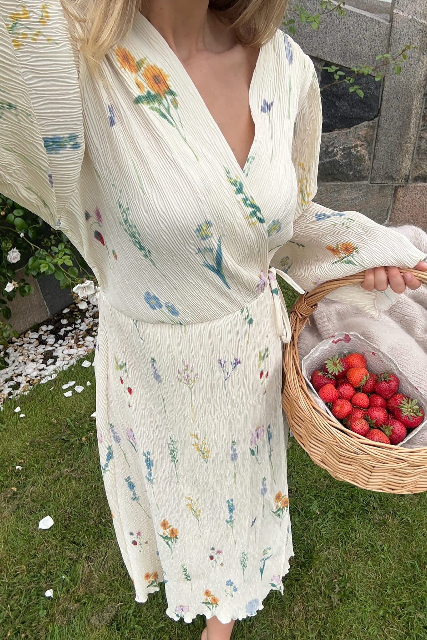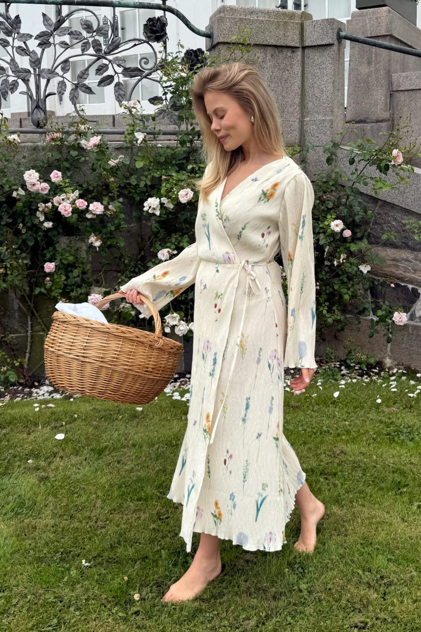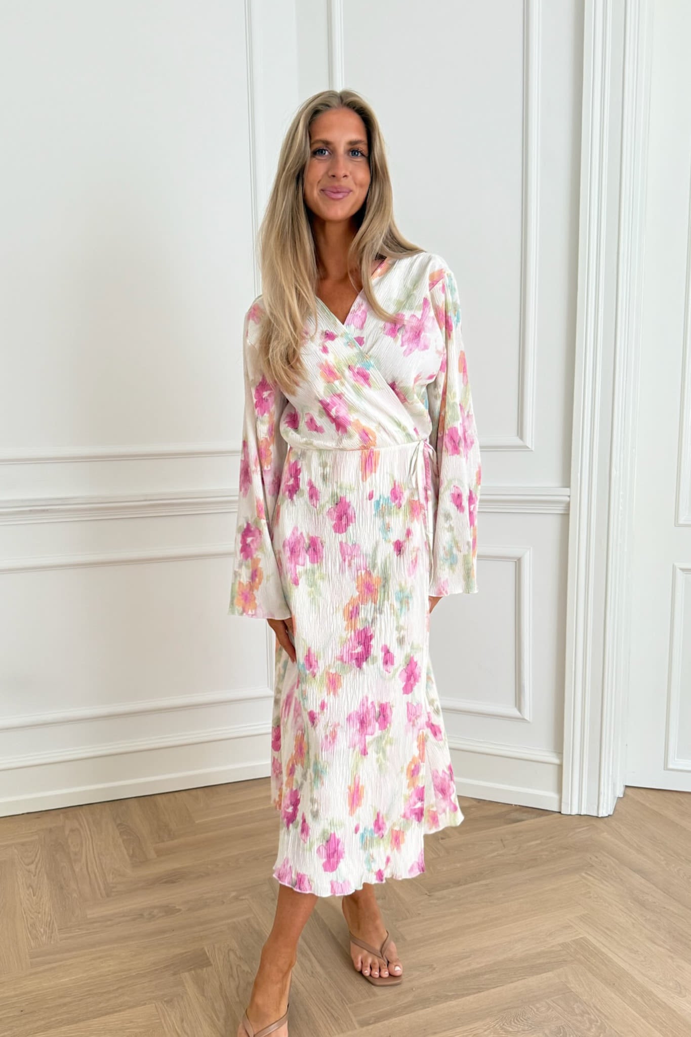 OfeliaIC Long Wrap Dress - Pink Flower Blush Print