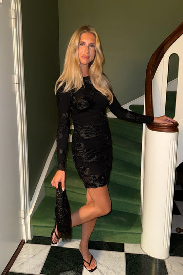 • MajaIC Mesh Klänning - Svart Beige Blomma