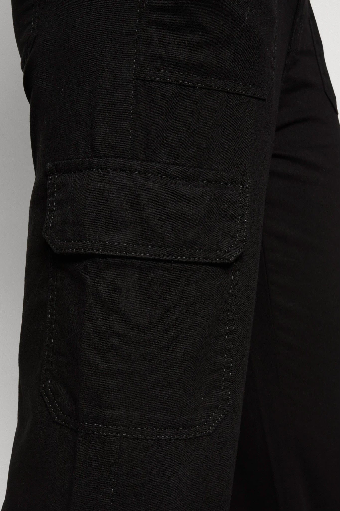 High waisted cargo jeans with lighter stitching.