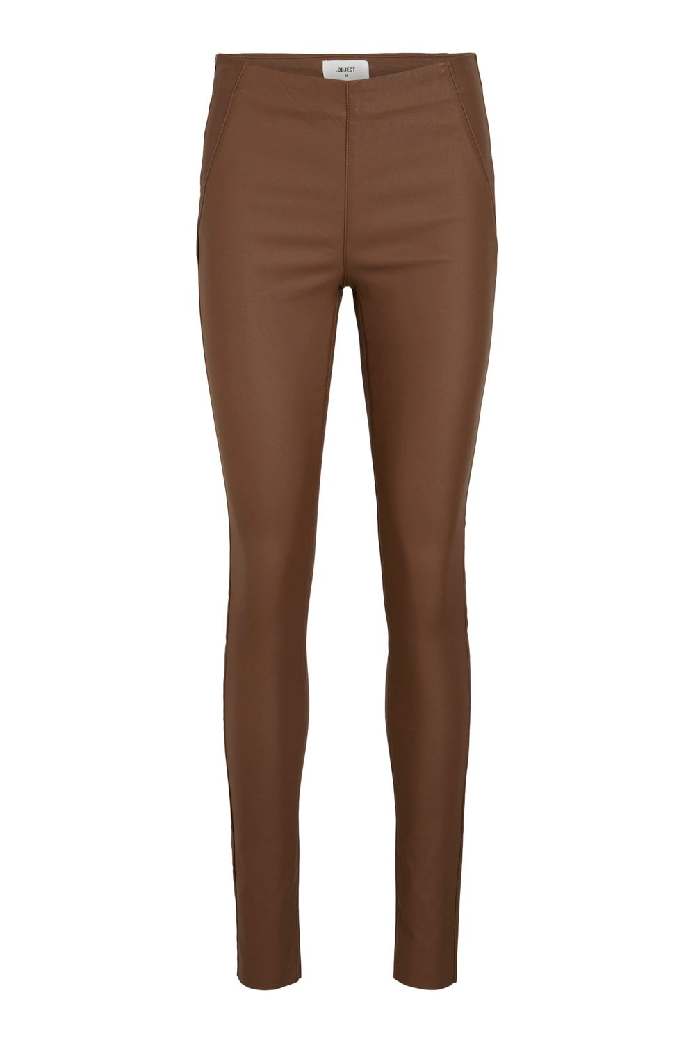Matte leggings in a coated material, tight fit and a zipper on the side.