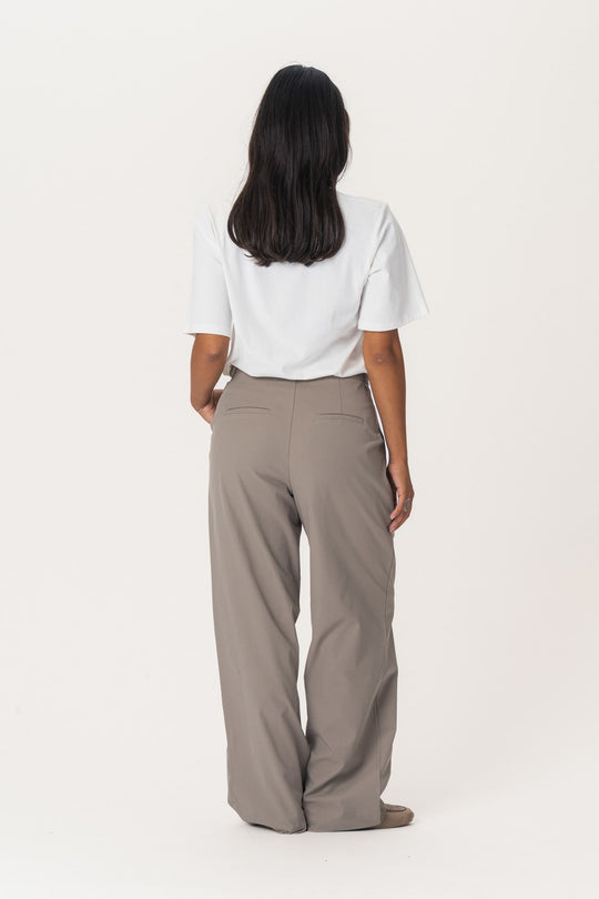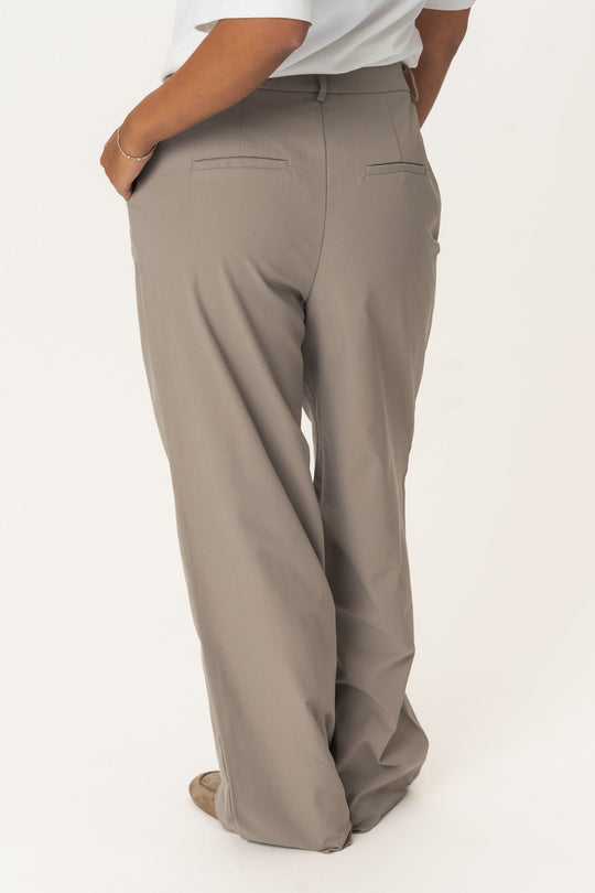 Vida skräddarsydda byxor, gjorda i ett mjukt material, två framfickor och två falska fickor bak. Den har dragkedja och stängning med byxhake framtill.