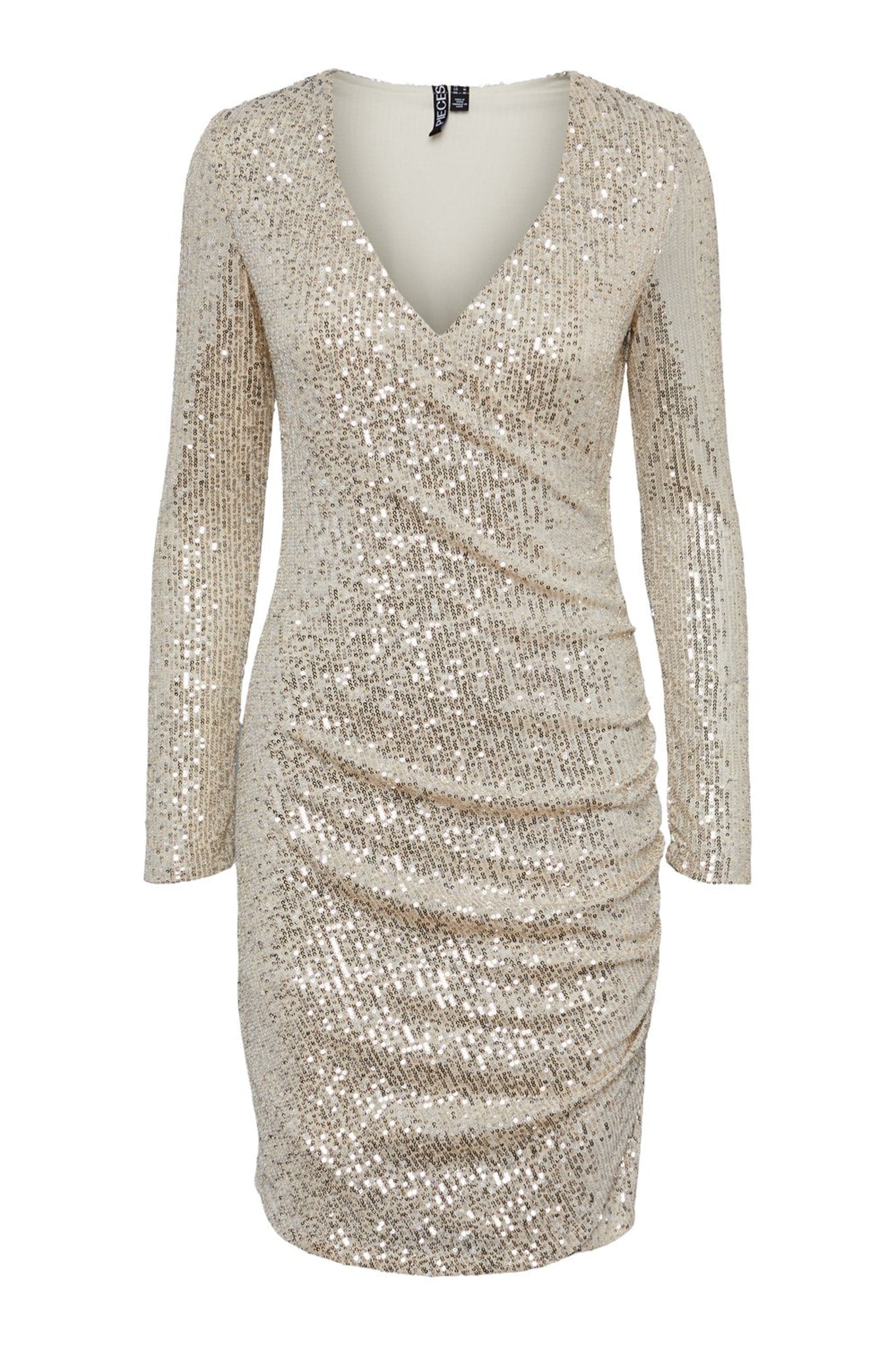Sparkling close-fitting dress with long sleeves, sequins and wrinkle effect.