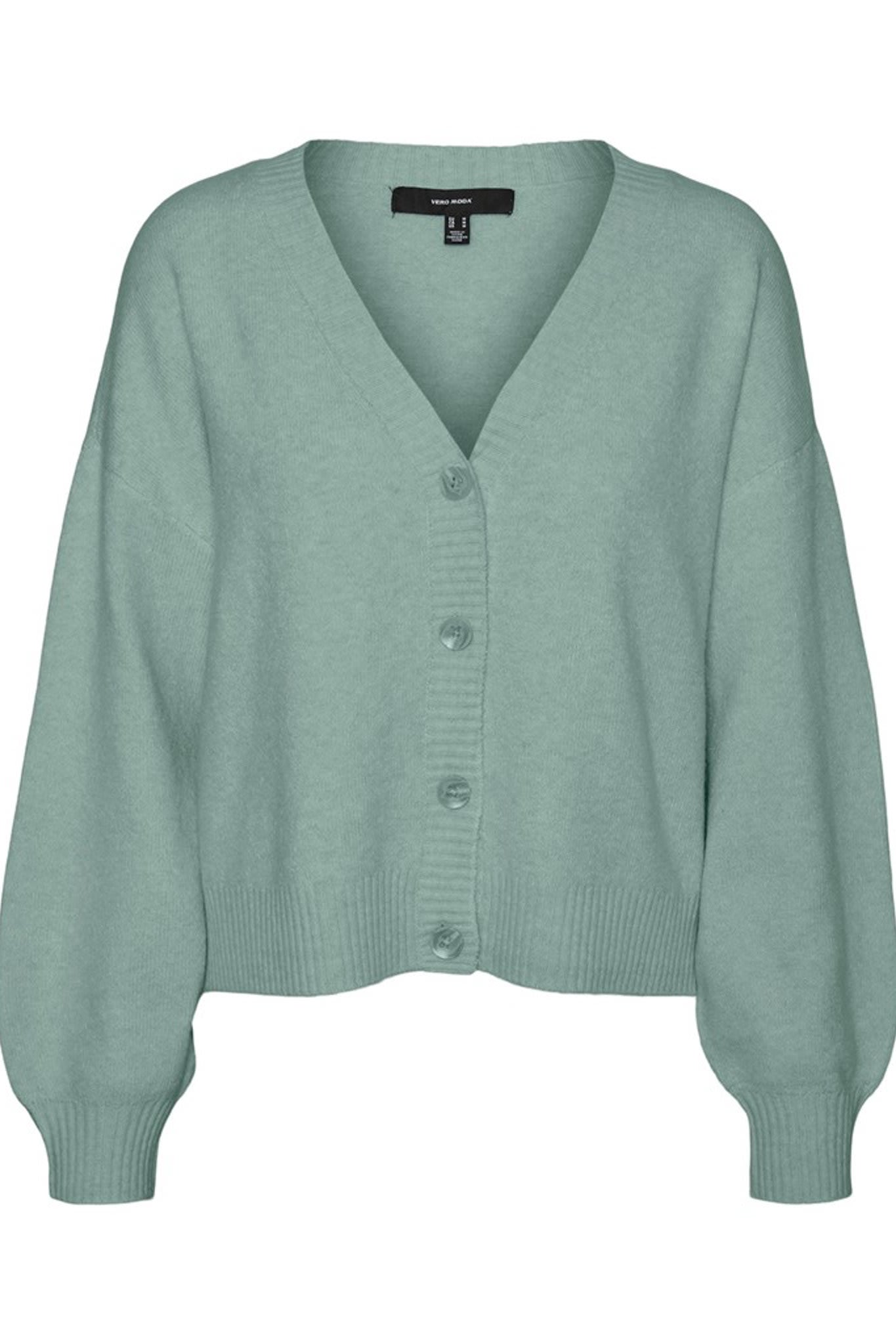 VMDoffy LS Vneck Button Cardigan - Jadeite Melange