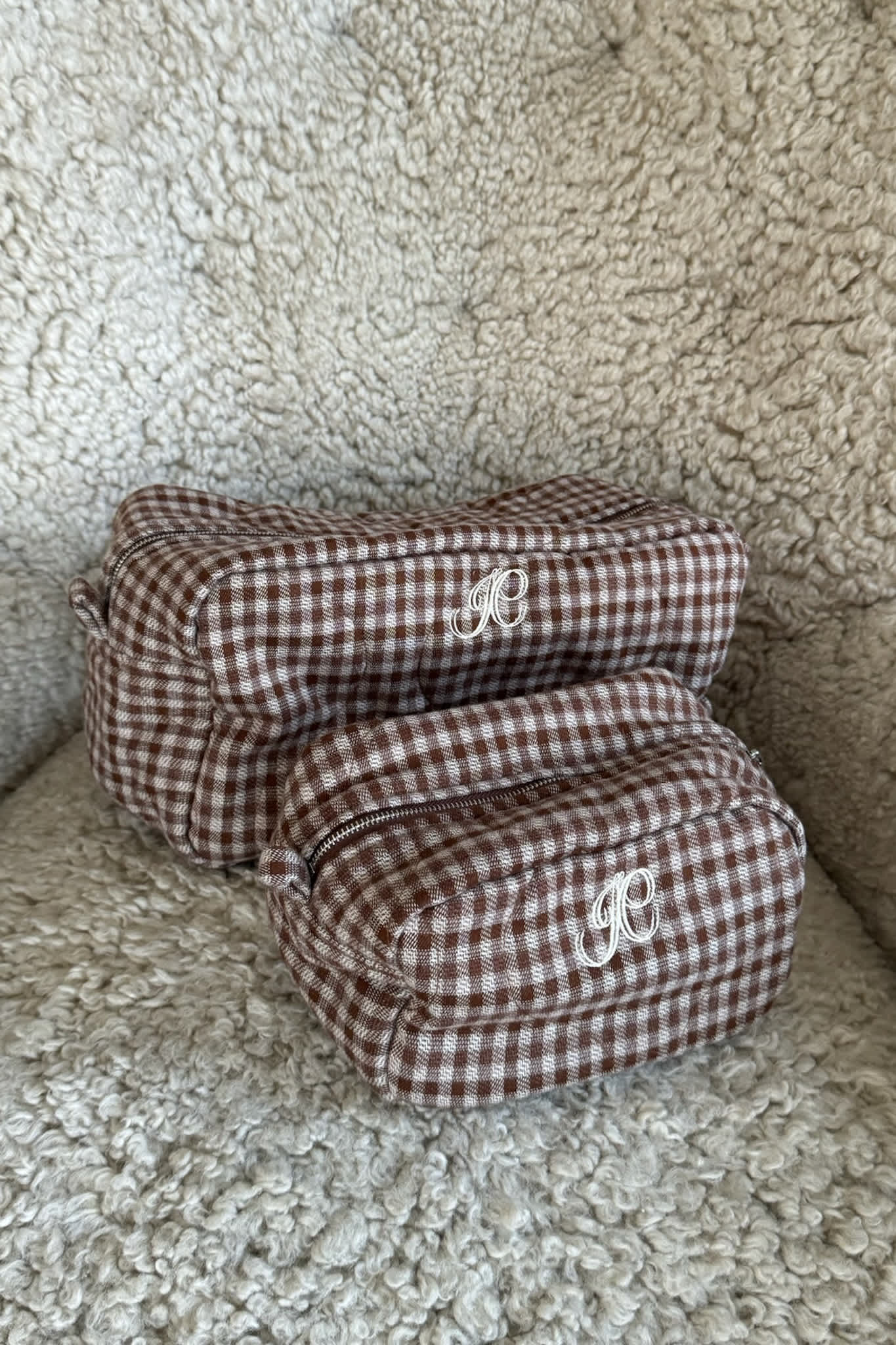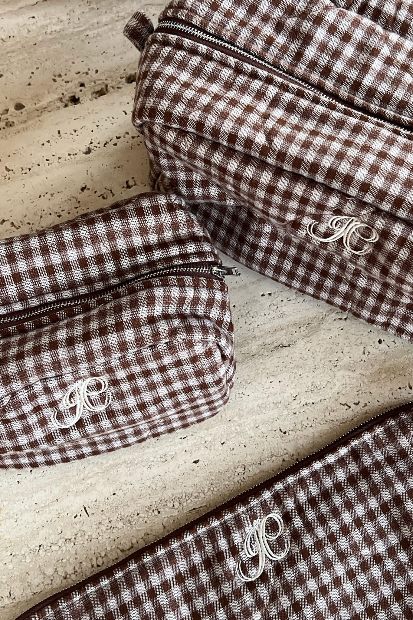 - EmilieIC Mini Cosmetic Bag - Brown Checks