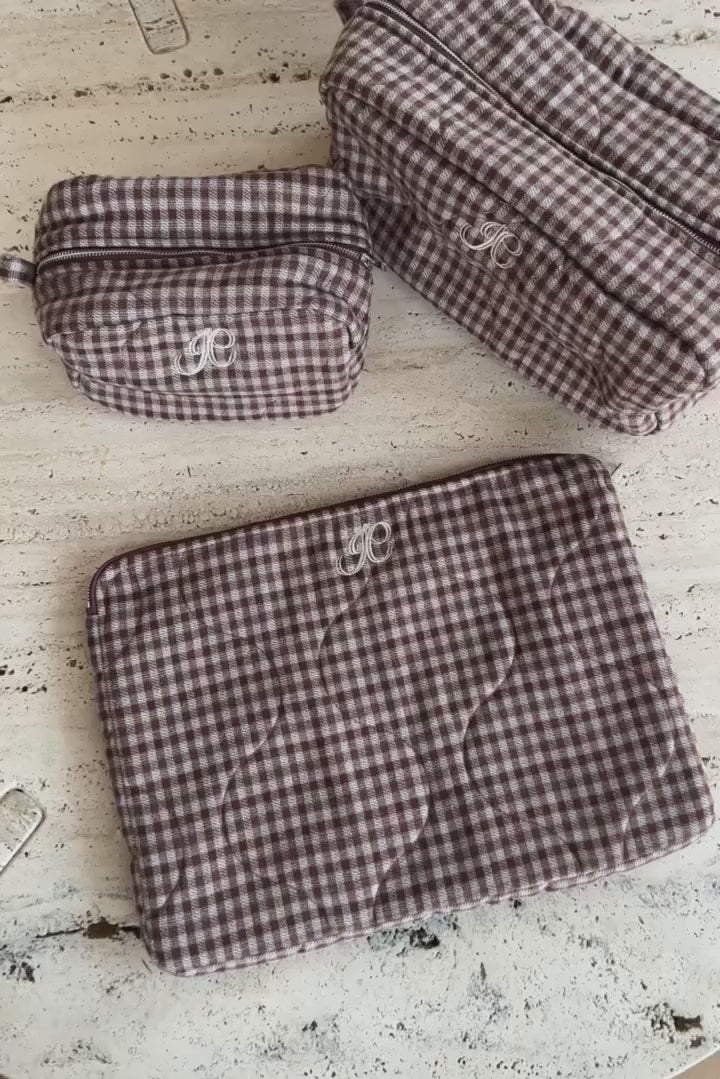 EmilieIC Mini Cosmetic Bag - Brown Checks