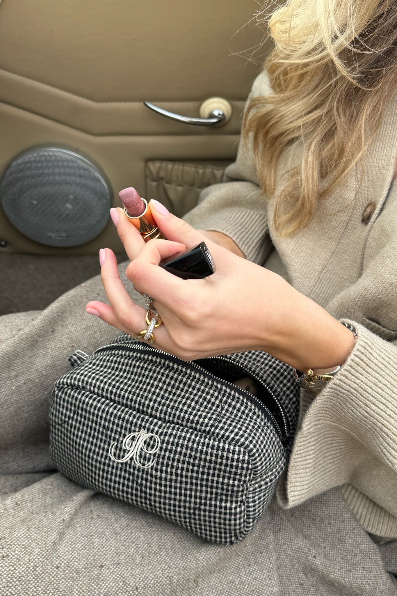 - EmilieIC Mini Cosmetic Bag - Black Checks