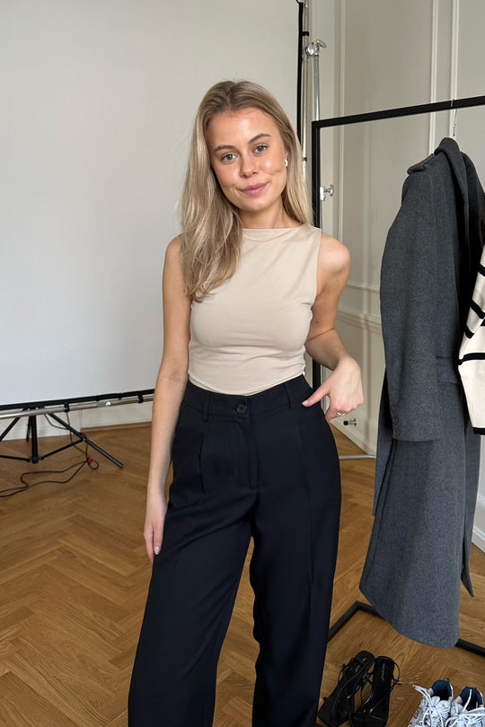 Perfect basic fit top in beige, you can use it in 2 ways - turn it around to make a cool look with a deep back.