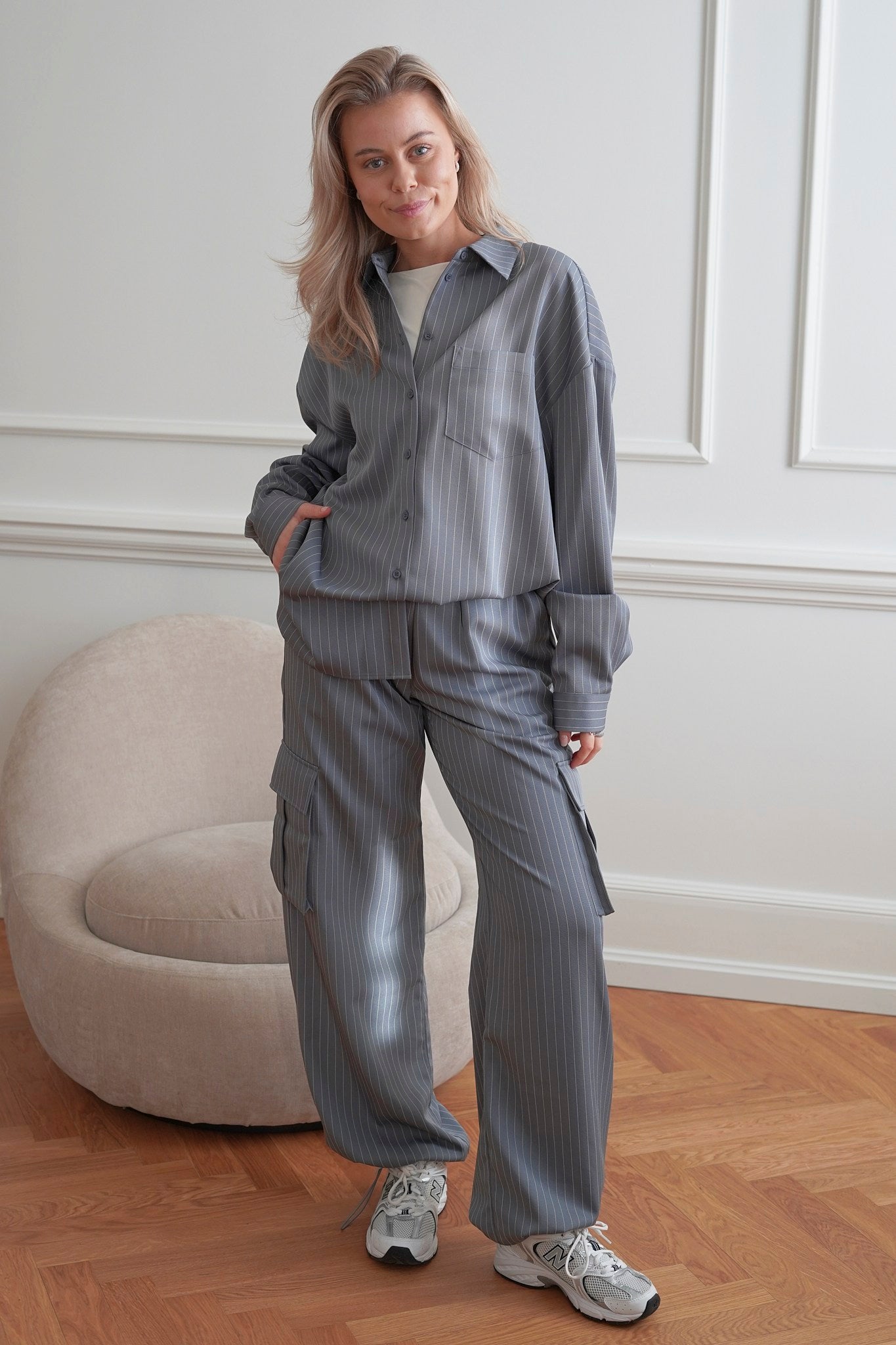 Perfect oversized shirt with stripes, one pocket, long sleeves and buttons to close - match it with our Liva cargo pants.