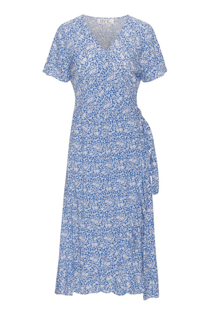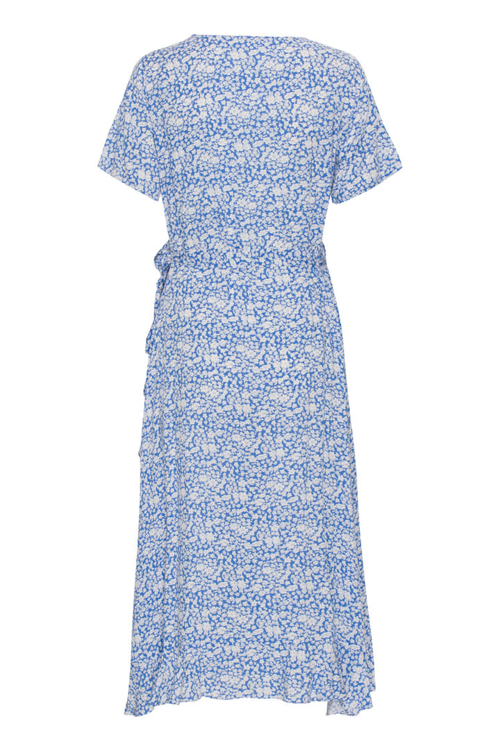 Beautiful and comfy wrap dress in blue flower print.