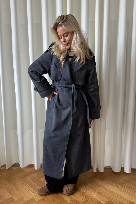 ONLMaisy Ull Trenchcoat - Mörkgrå