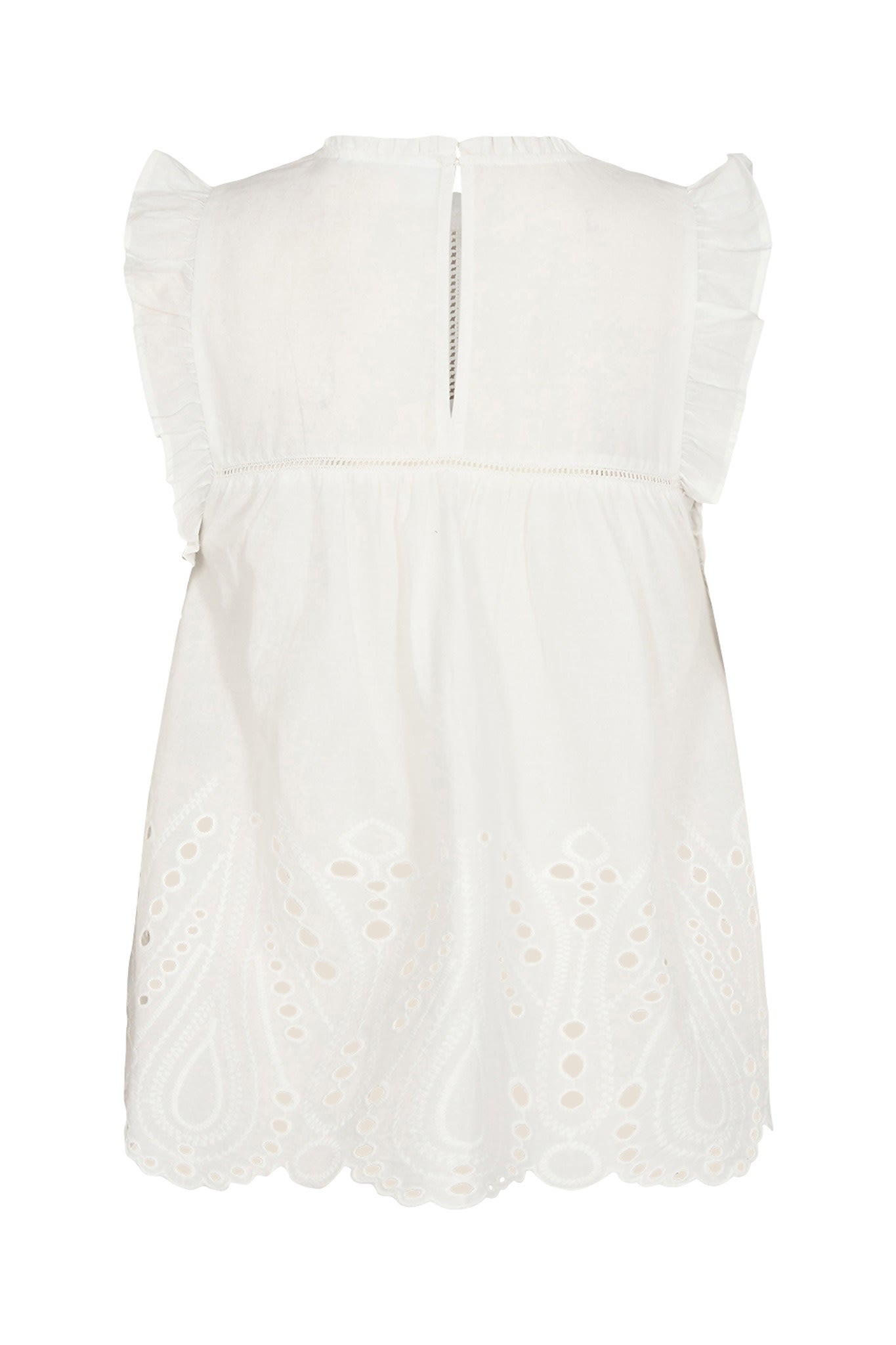 Short sleeved top with ruffle- and embroidery details, match it with Matea shorts.