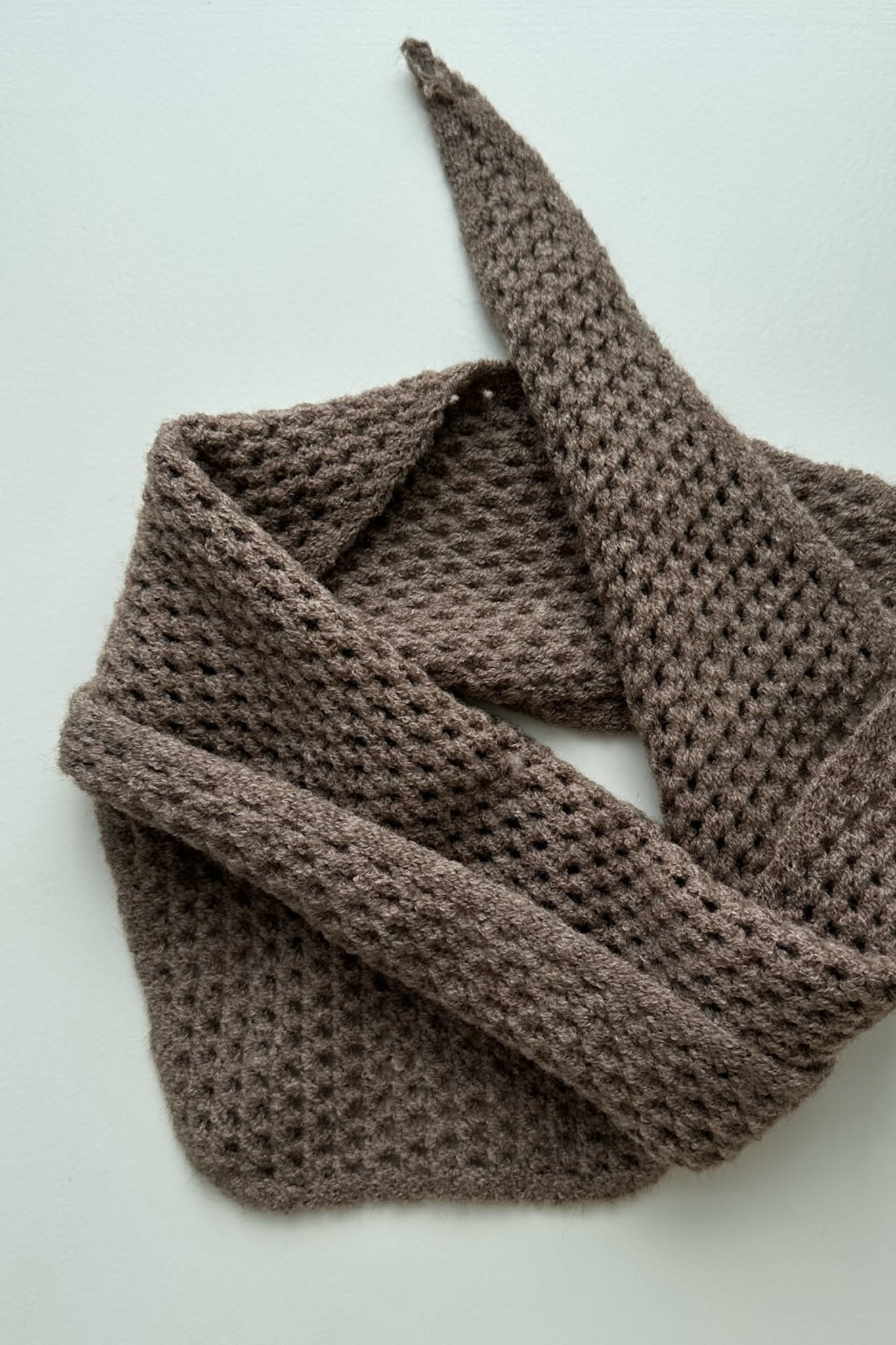 Knitted, triangle scarf in a brown color, you can wear it for all seasons.