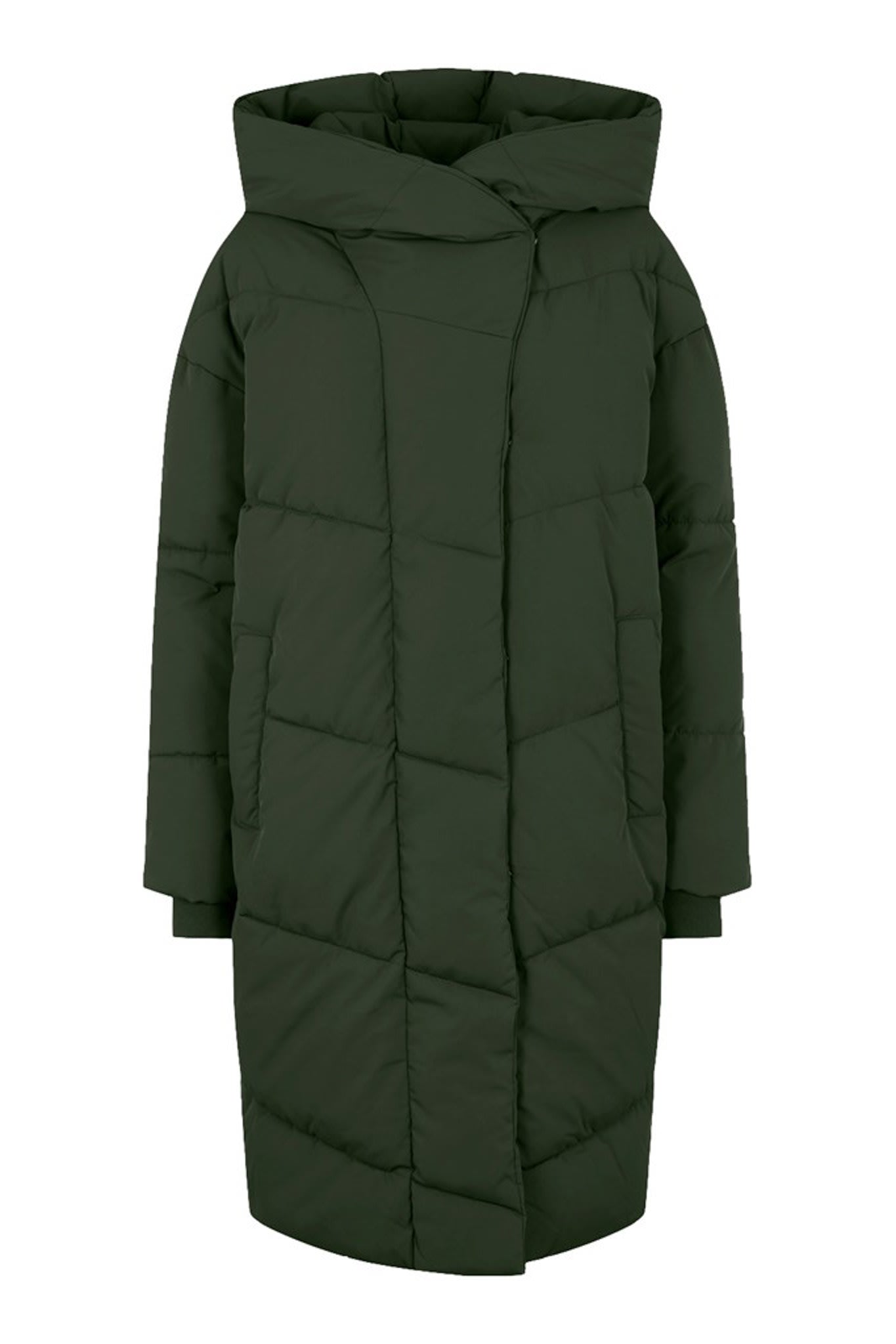 Perfect winter jacket with an oversized fit, a hoodie, pockets and buttons as closure.