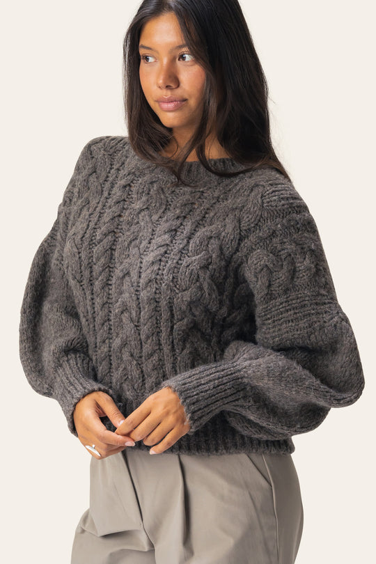 Vacker tröja med de finaste detaljerna. Flätat mönster i hela stickningen.