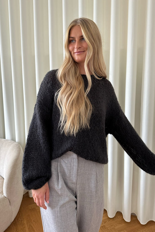 Comfy knit in grey with long sleeves and a loose fit.