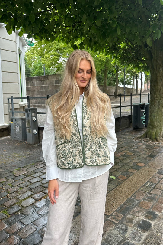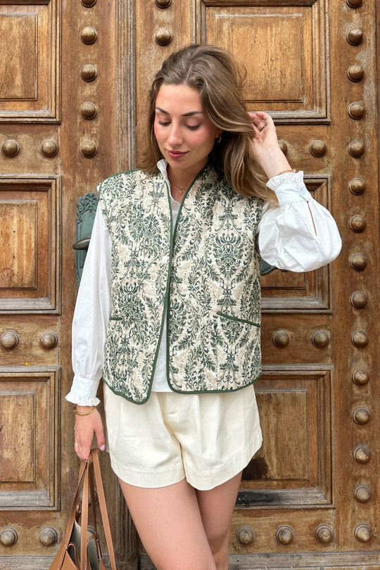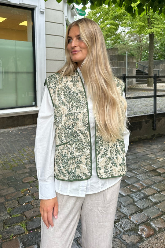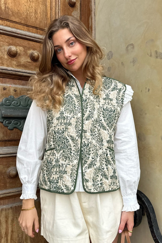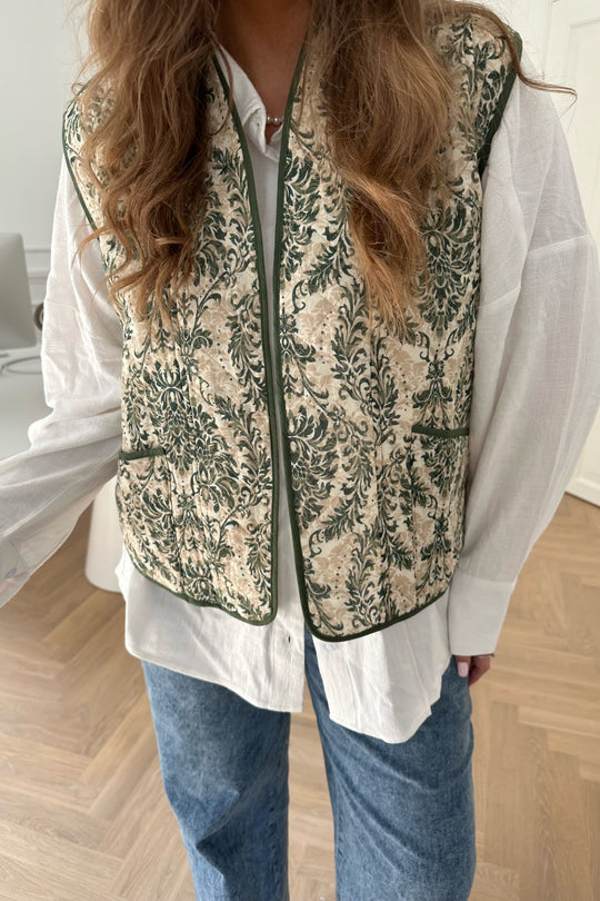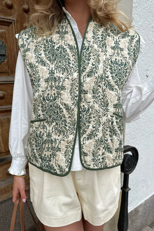 Quilted vest in a vintage green print - perfect for spring and summer on top of a basic shirt to spice up the outfit.