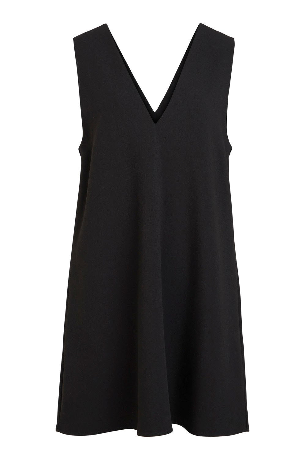 Black basic dress with no sleeves and perfect with a shirt underneath.