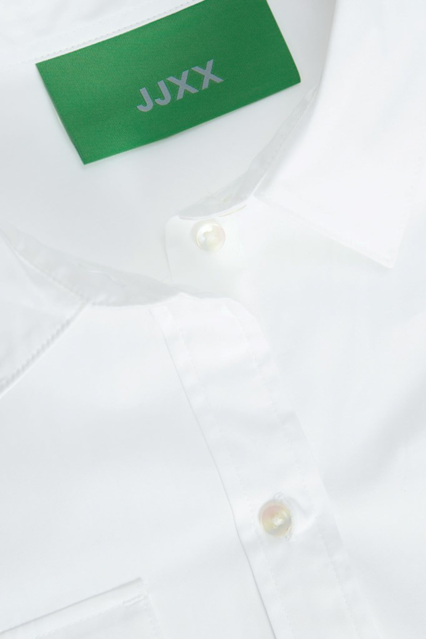 Cropped shirt in white with two pockets and buttons to close.