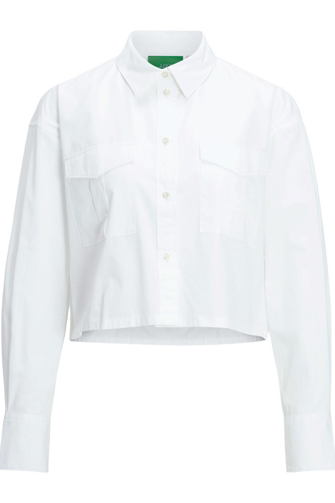 - JXSolly 2 Pocket Poplin LS Cropped Shirt - White