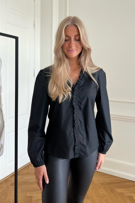 Our beautiful shirt with ruffles in plain black